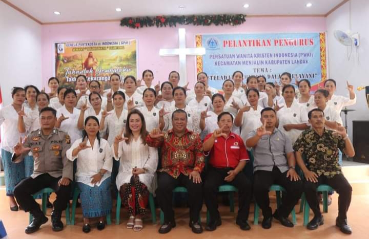 STRATEGINEWS. Landak Kalbar- Ketua Dewan Perwakilan Rakyat Daerah (DPRD) Kabupaten Landak Heri Saman, S.H., M.H., menghadiri Pelantikan Persatuan Wanita Kristen Indonesia (PWKI) Kecamatan Menjalin Kabupaten Landak Sabtu (8/7/2023).