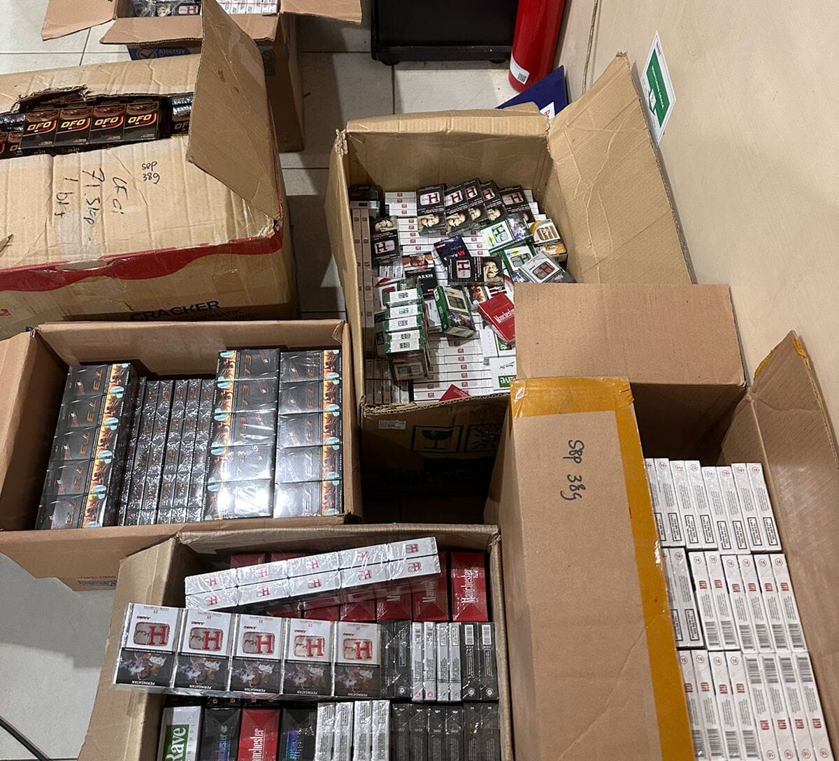 “Kami sita rokok ilegal dari merek seperti HMIND, H&D, MAXXIS, dan lainnya, serta 22,3 liter minuman beralkohol tanpa izin,” jelasnya.