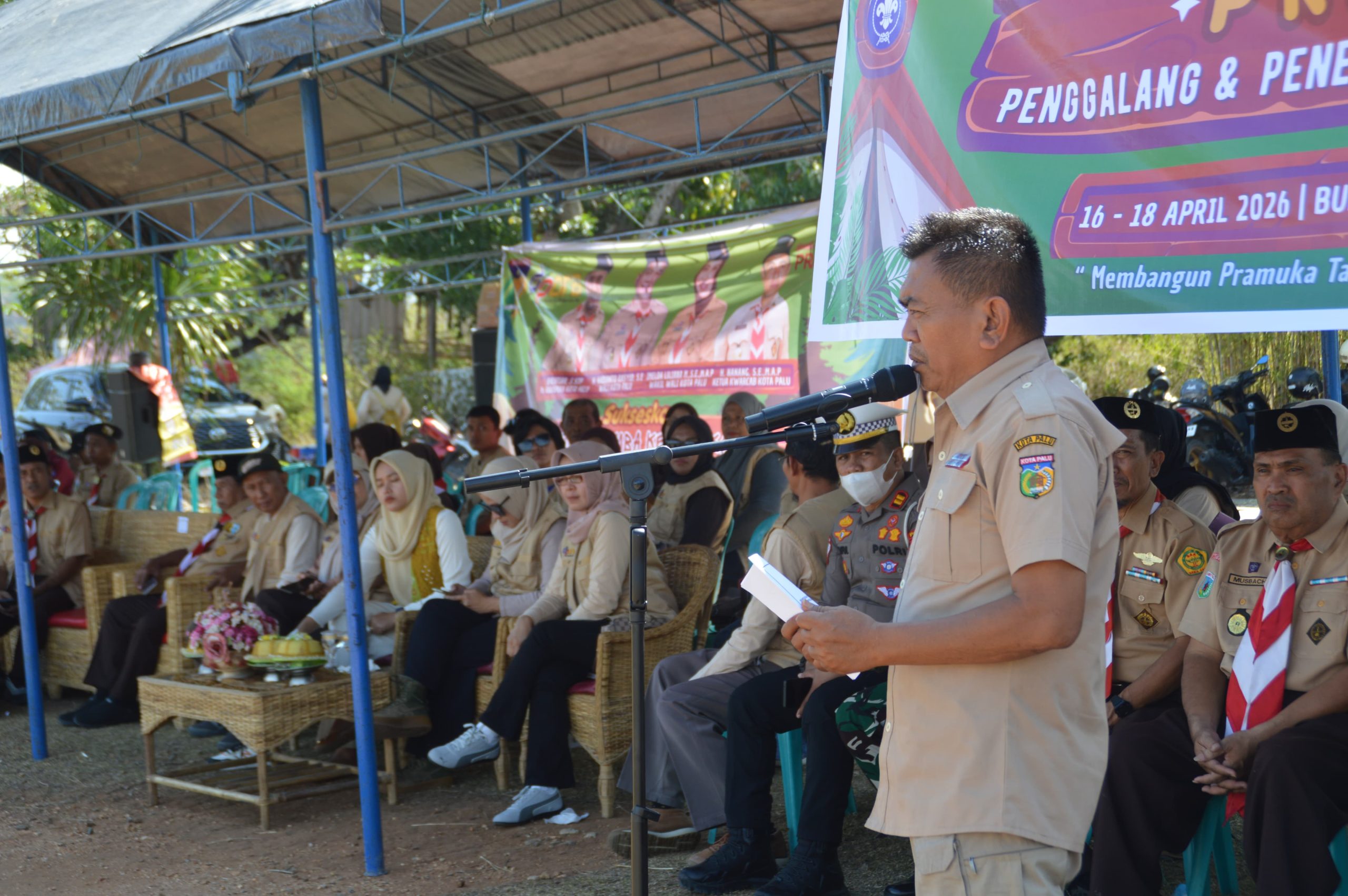 Strateginews.id- Sulteng, Wali Kota Palu yang diwakili oleh Staf Ahli Bidang Ekonomi dan Keuangan, Nathan Pagasongan, S.Sos., M.Si, membuka kegiatan Kemah Pramuka tingkat Penggalang dan Penegak (SMP dan SMA) se-Kota Palu, di Bumi Perkemahan Pue Mantikulore, Kelurahan Kawatuna, Kecamatan Mantikulore. Kamis (16/04/26).